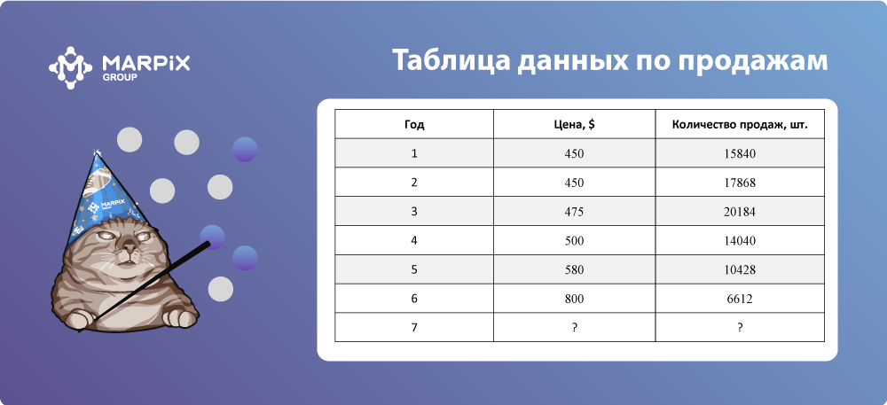 Вот как выглядел прогноз продаж с учетом ошибки на ~13%.: Для стоимости товара= 800$, значение продаж колеблется в пределах: ~4991 шт. <… <~6483 шт.* Для стоимости товара= 820$, значение продаж колеблется в пределах: ~4422 шт. <… <~5744 шт.* Для стоимости товара= 900$, значение продаж колеблется в пределах: ~2145 шт. <… <~2786 шт.* Какова максимальная цена, при которой вообще перестанут покупать товар. Вы хотите знать предел цены, по которой товар еще можно будет продать? Используя созданную простую модель, я представил руководству и этот ответ: Для стоимости товара свыше 975 $. – анализ требует поквартального анализа. При цене 975 $ за 1шт продукта придется приложить усилия, чтобы продать несколько штук. Важно отметить, что в данном кейсе прогноз строится без учета других факторов. В идеале нужно делать поправку на другие важные обстоятельства работы: